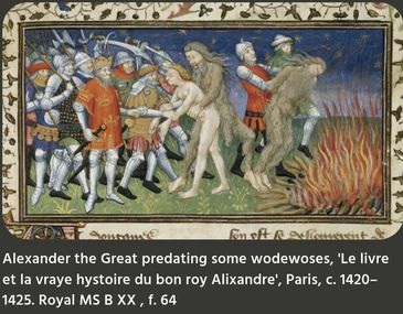 Alexander the Great capturing Woodwoses (hairy wild men of the woods) in 'Le livre et la vraye hystoire du bon roy Alixandre', Paris, c. 1420–1425. British Library Royal MS 20 B XX, f. 64.Alexander the Great gathered so much evidence of our past — including these medieval wild man depictions that resemble Sasquatch / Bigfoot — and it was burned for a reason!!